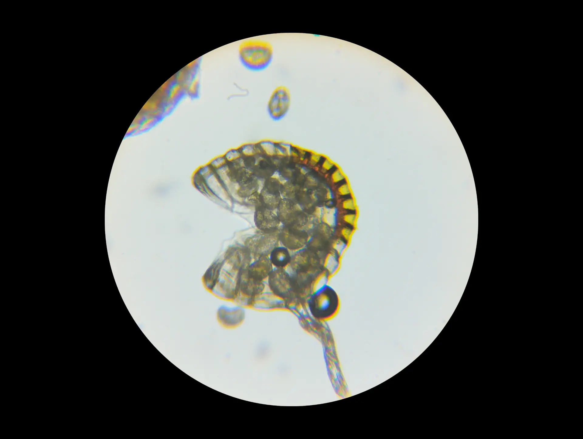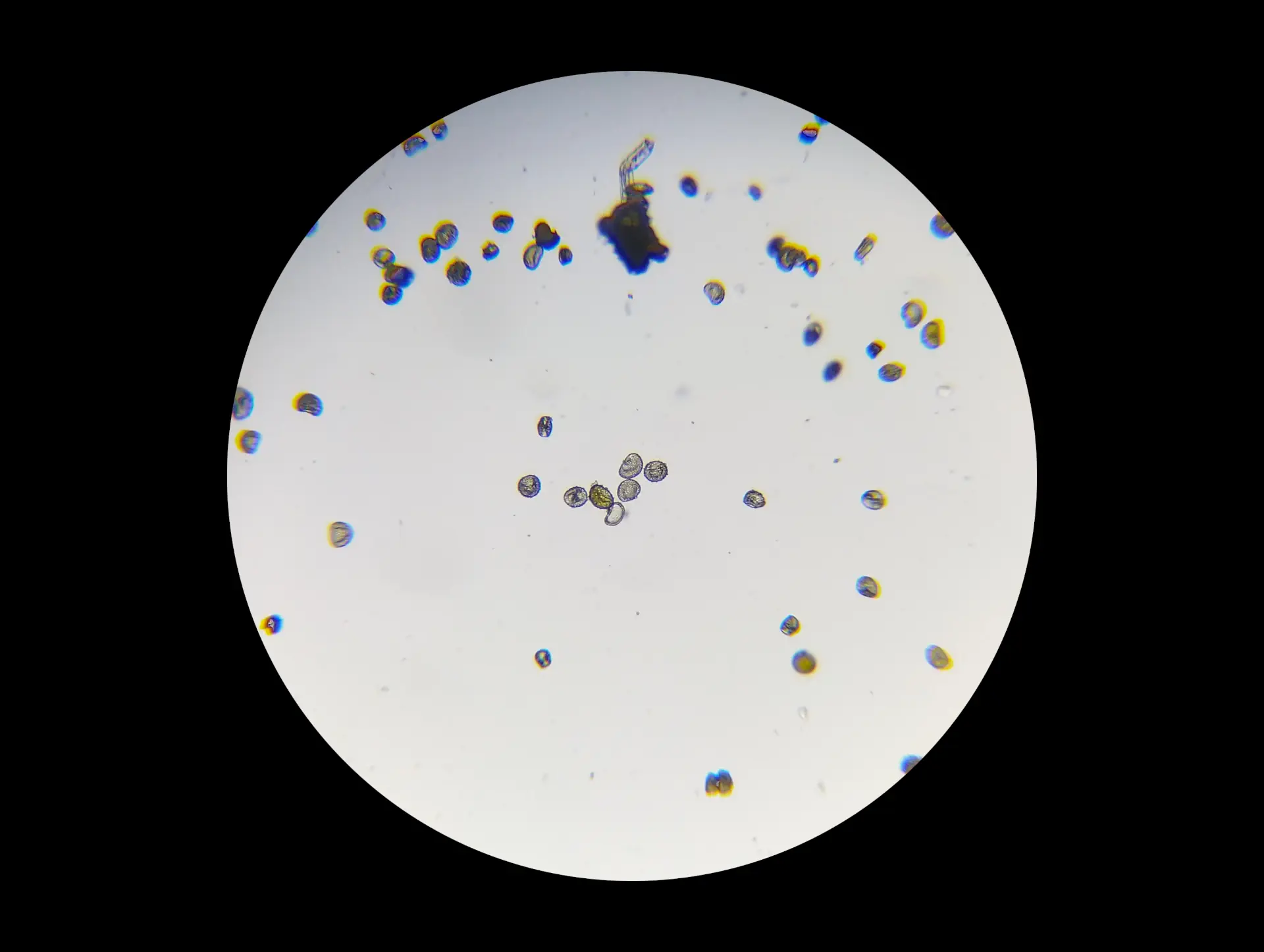 An examination under a microscope revealed a majority of aborted, grayish spores of variable size, and sporangia with an annulus made of 6-8 cells, with 2-3 cells between the pedicel and the base of the annulus.